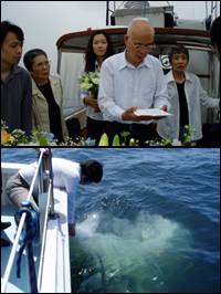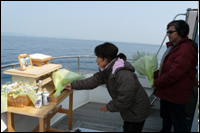 散骨地点に到着後、開会の辞につづいて お一人様づつ、お別れを行います